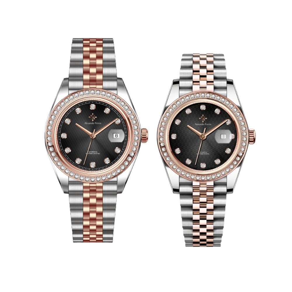 Bộ đồng hồ đeo đôi này mang phong cách thiết kế homage lấy cảm hứng từ mẫu đồng hồ cơ kiểu dáng Rolex, tạo nên diện mạo cao cấp nhưng vẫn giữ mức giá tốt, dễ tiếp cận trong phân khúc đồng hồ đôi đẹp và bền bỉ. Không chỉ đơn thuần là một chiếc đồng hồ nam nữ, bộ đồng hồ đeo cặp Alexander Ferros còn tượng trưng cho sự gắn kết theo thời gian giống như nhịp sống song hành của hai người, tạo nên một dấu ấn lãng mạn và đầy ý nghĩa trên cổ tay.