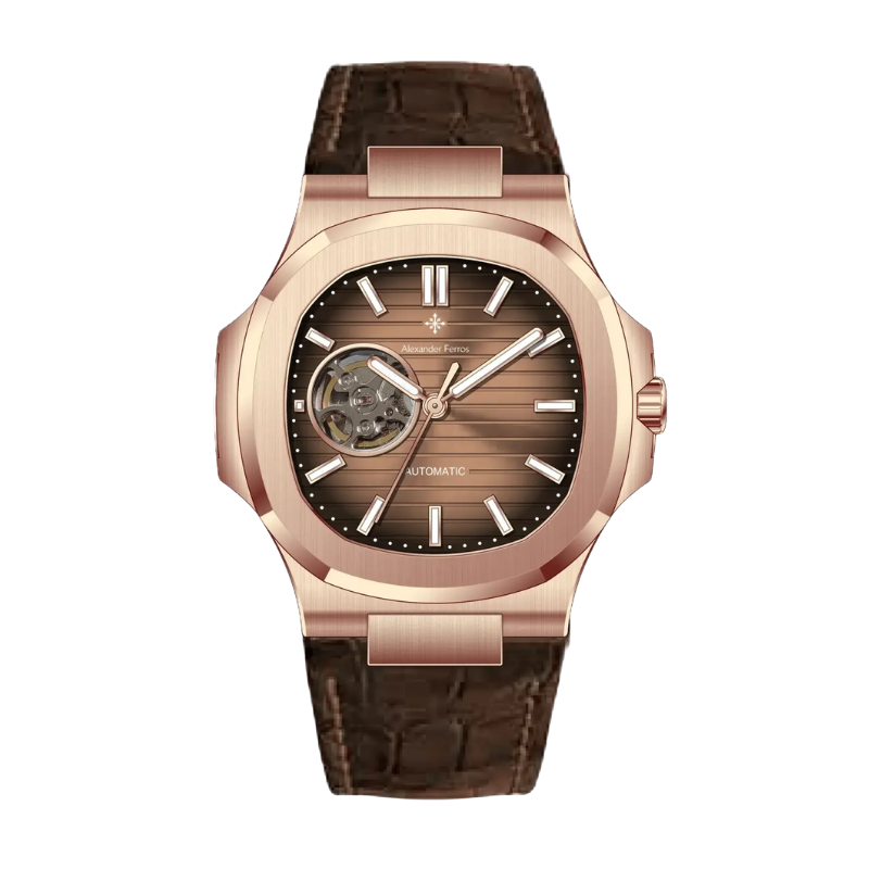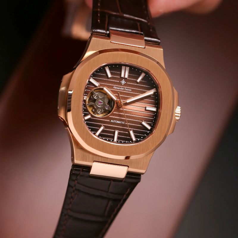 Đồng hồ Alexander Ferros 6102R-08 là mẫu đồng hồ nam mang phong cách hiện đại, lấy cảm hứng từ thiết kế đồng hồ Patek nổi tiếng. Phiên bản 6102R-08 nổi bật với mặt số nâu choco sang trọng kết hợp vỏ mạ vàng hồng cá tính, tạo nên tổng thể hài hòa dành cho quý ông yêu thích sự lịch lãm nhưng vẫn khác biệt.