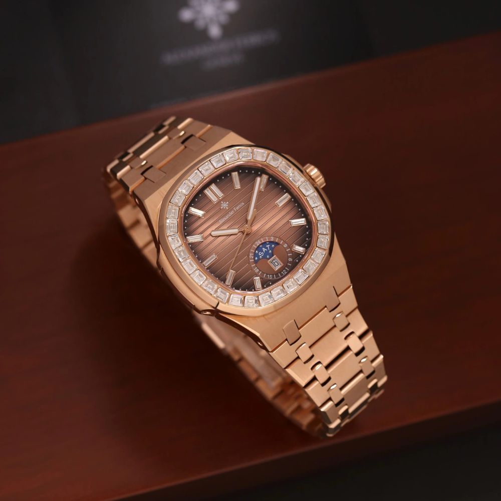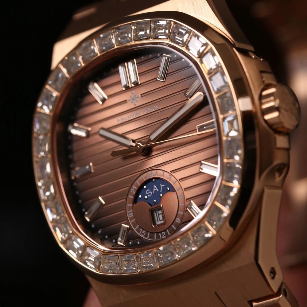 Đồng hồ Alexander Ferros 6111R/08 là mẫu đồng hồ nam cao cấp nổi bật với thiết kế sang trọng mang hơi hướng châu Âu hiện đại. Phiên bản 6111R/08 sở hữu mặt số nâu choco trầm ấm kết hợp cọc số đá và niềng đá tinh xảo, tạo nên tổng thể đẳng cấp dành cho nam giới yêu thích phong cách lịch lãm nhưng vẫn nổi bật cá tính.