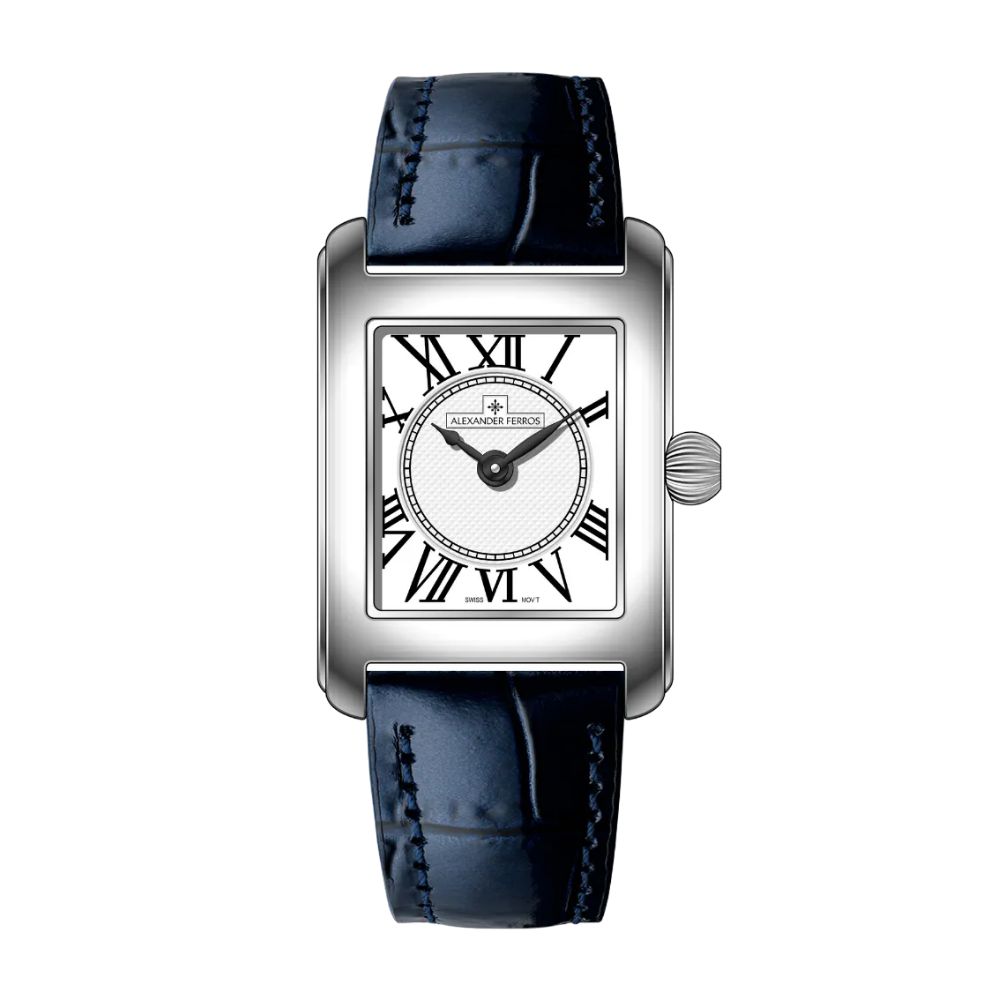 Đồng hồ Alexander Ferros 7282S-02 là mẫu đồng hồ nữ mang phong cách cổ điển thanh lịch với thiết kế mặt vuông tinh tế, dây da xanh sang trọng. Dòng đồng hồ AF này phù hợp với phong cách nhẹ nhàng, nữ tính.