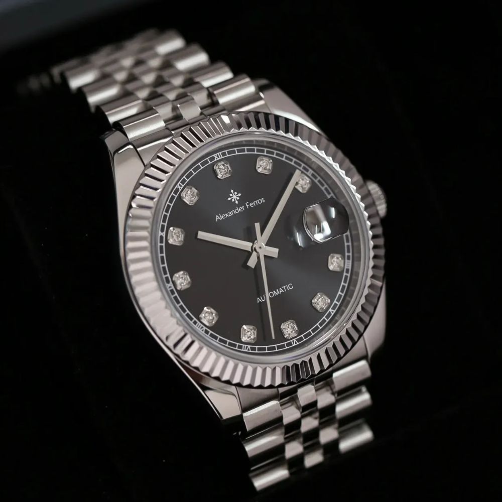 Đồng hồ Alexander Ferros 8132S/01 là mẫu đồng hồ nam mang phong cách hiện đại, nổi bật với mặt số đen mạnh mẽ và thiết kế lấy cảm hứng từ những mẫu đồng hồ Rolex kinh điển. Phiên bản 8132S/01 thuộc dòng đồng hồ Alexander Ferros nam, phù hợp với nam giới yêu thích vẻ ngoài lịch lãm, chỉn chu nhưng vẫn đậm chất cá tính.