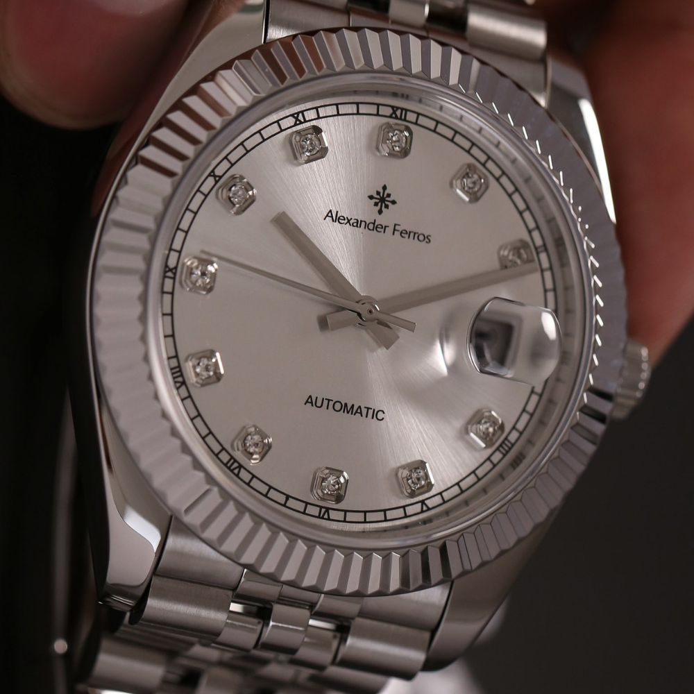Alexander Ferros 8132S/02 được trang bị máy cơ Japan Movement, mang lại khả năng vận hành ổn định và độ chính xác cao trong quá trình sử dụng. Kính sapphire giúp hạn chế trầy xước hiệu quả, phù hợp với nhu cầu đeo hằng ngày. Dây kim loại chắc chắn kết hợp kích thước mặt 40mm và khả năng chống nước 5 ATM giúp đồng hồ AF 8132S/02 đáp ứng tốt cả môi trường công sở lẫn sinh hoạt thường nhật.