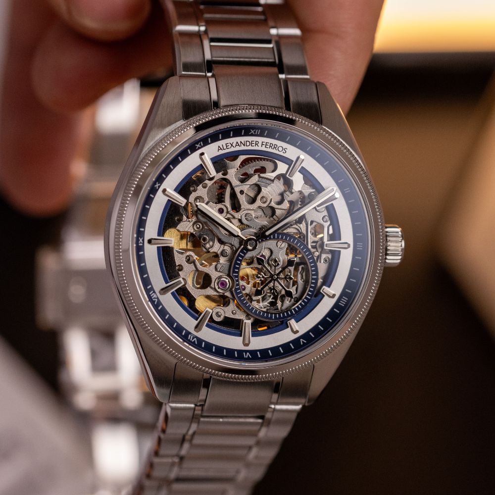 Đồng hồ Alexander Ferros 9262S/05 là nổi bật với thiết kế mang phong cách hiện đại kết hợp cùng vẻ đẹp cơ khí đầy tinh xảo. Phiên bản gây ấn tượng với thiết kế mặt số skeleton lộ cơ độc đáo, cho phép người đeo dễ dàng quan sát chuyển động tinh vi của bộ máy bên trong.