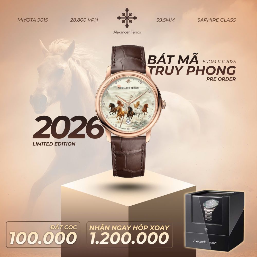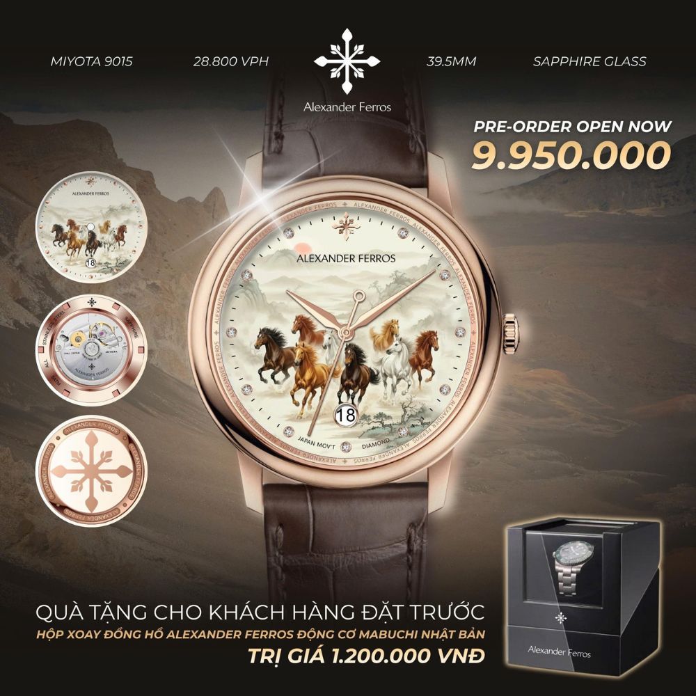Đồng Hồ Alexander Ferros Bát Mã Đồ Mạ Vàng Hồng Cọc Kim