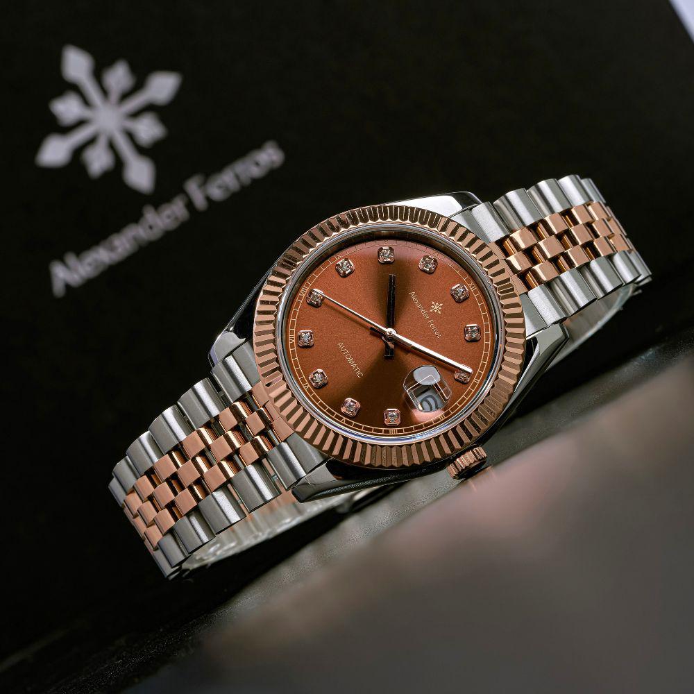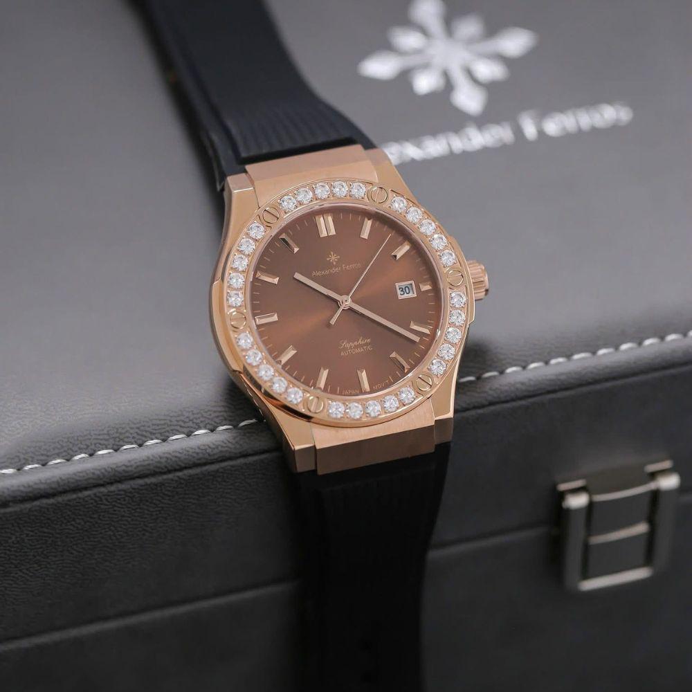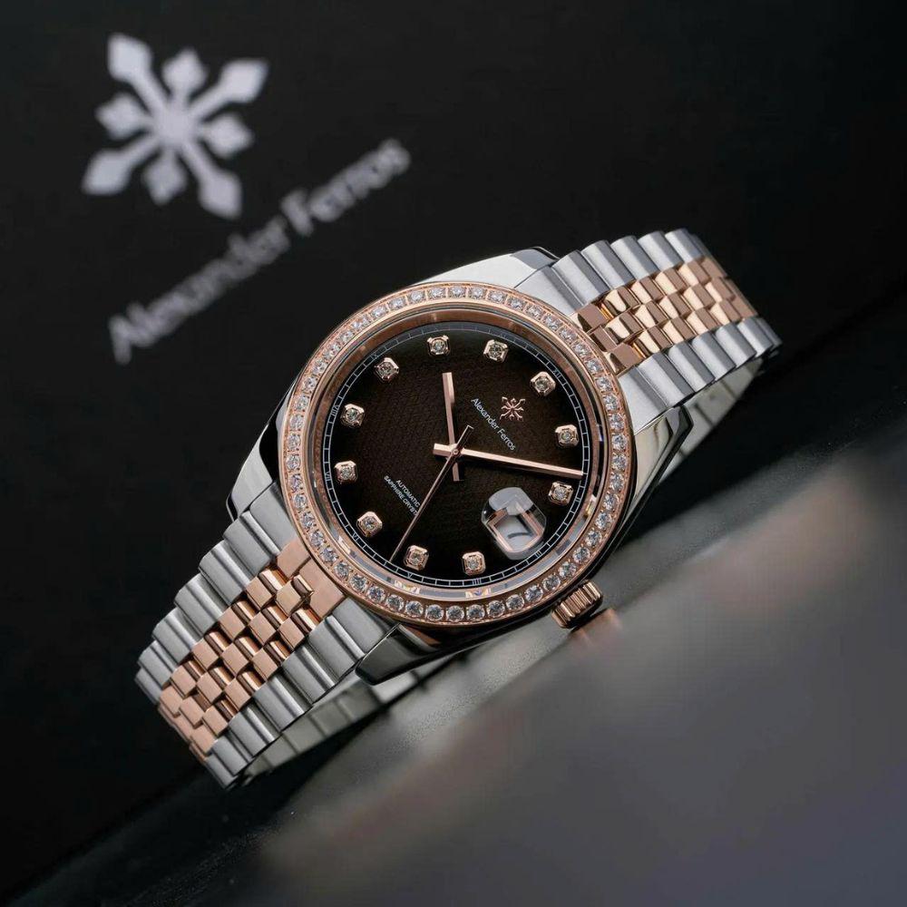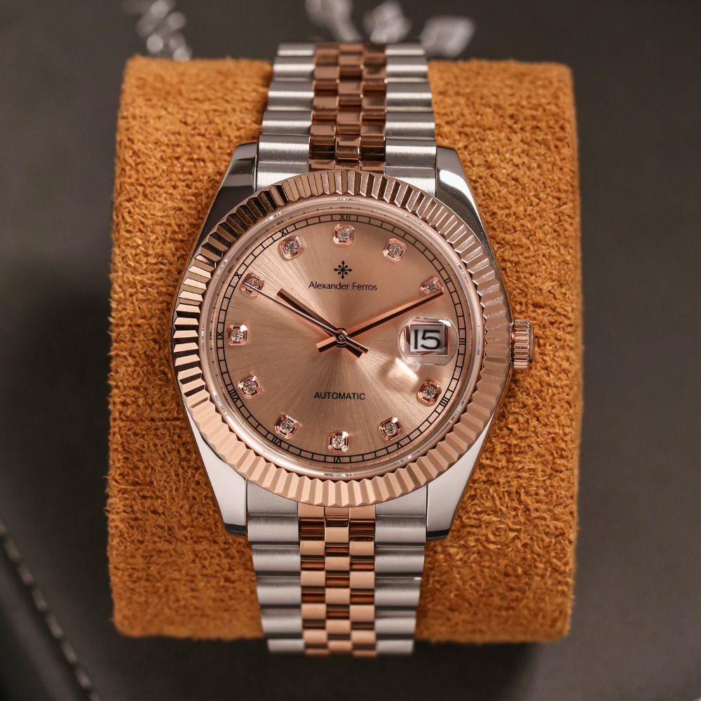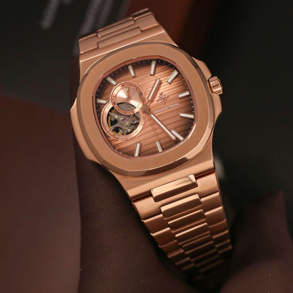 Đồng Hồ Alexander Ferros Bát Mã Đồ Mạ Vàng Hồng Cọc Kim