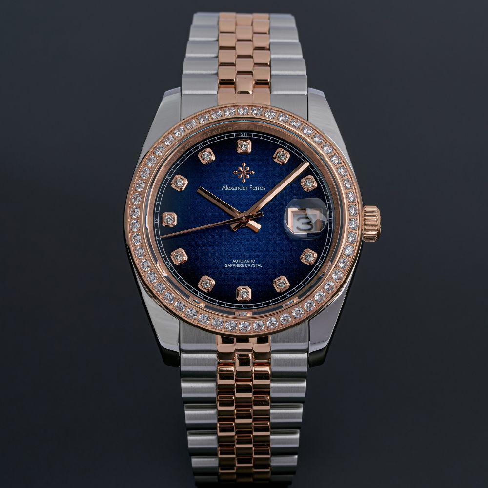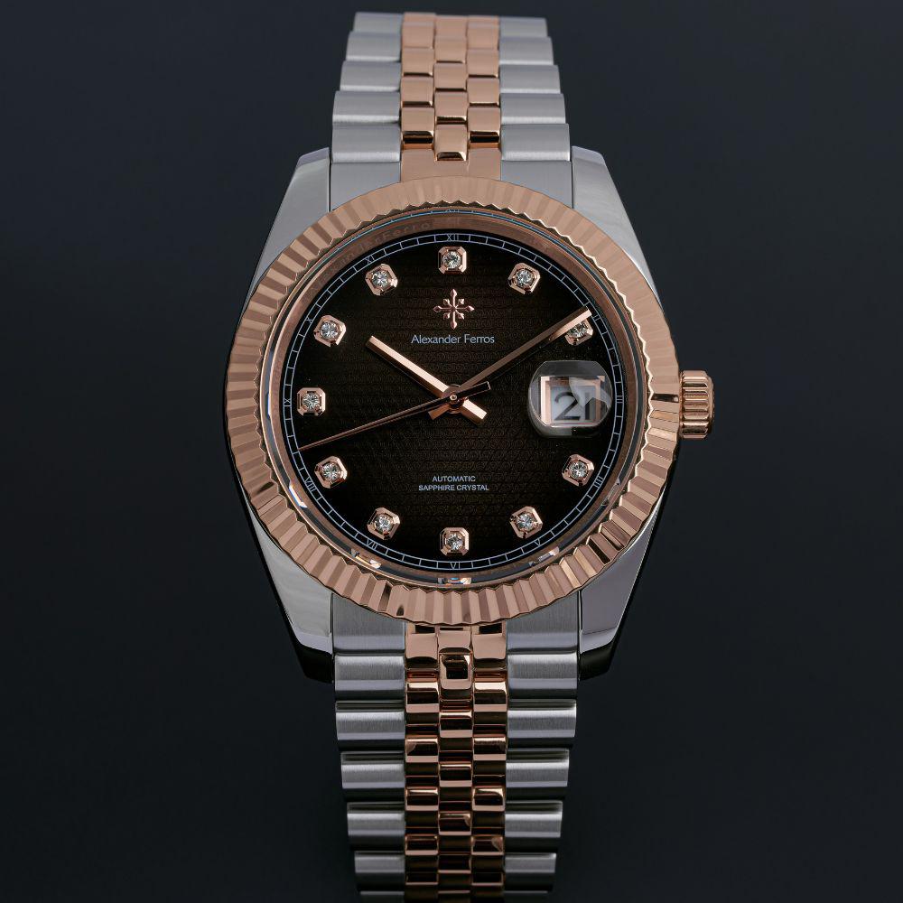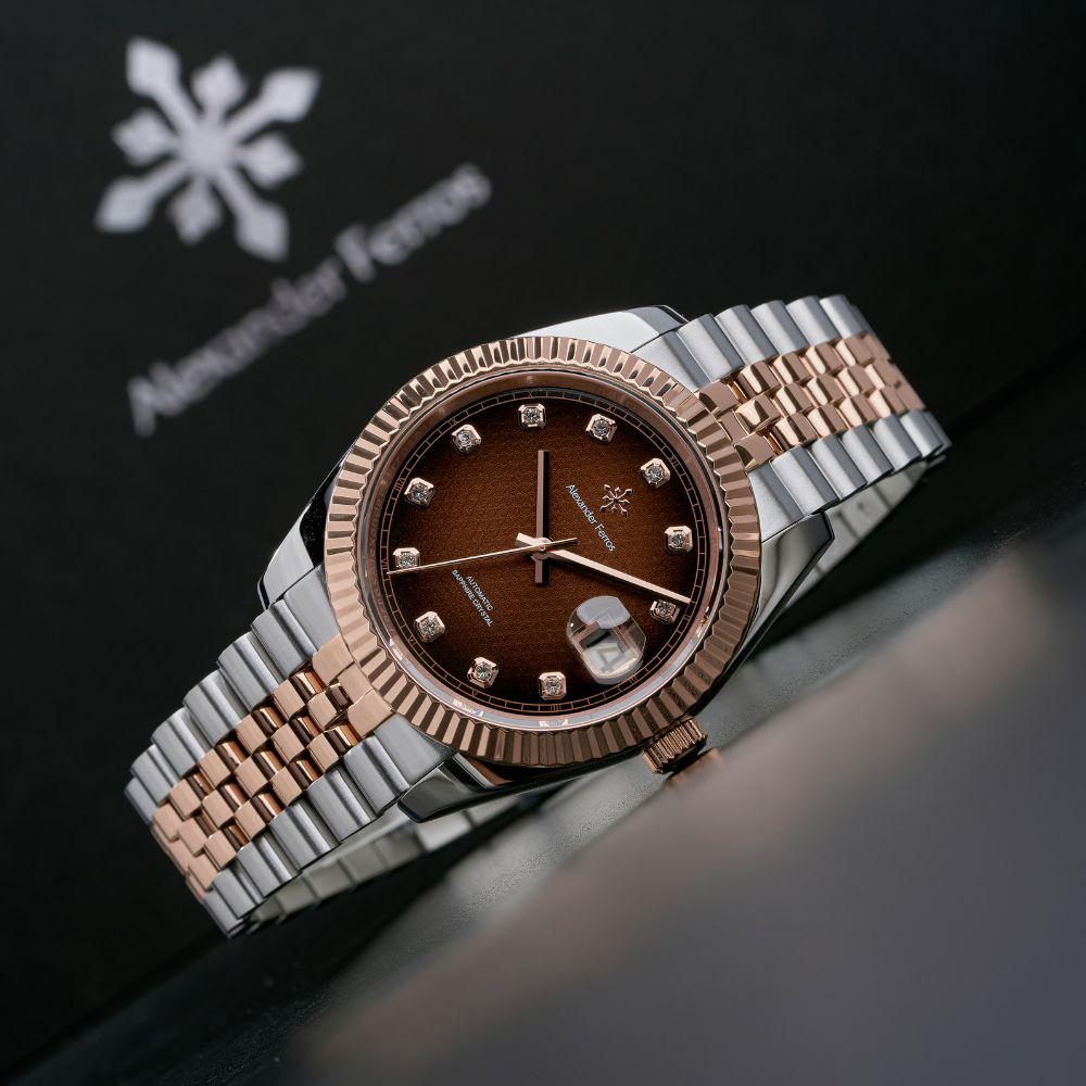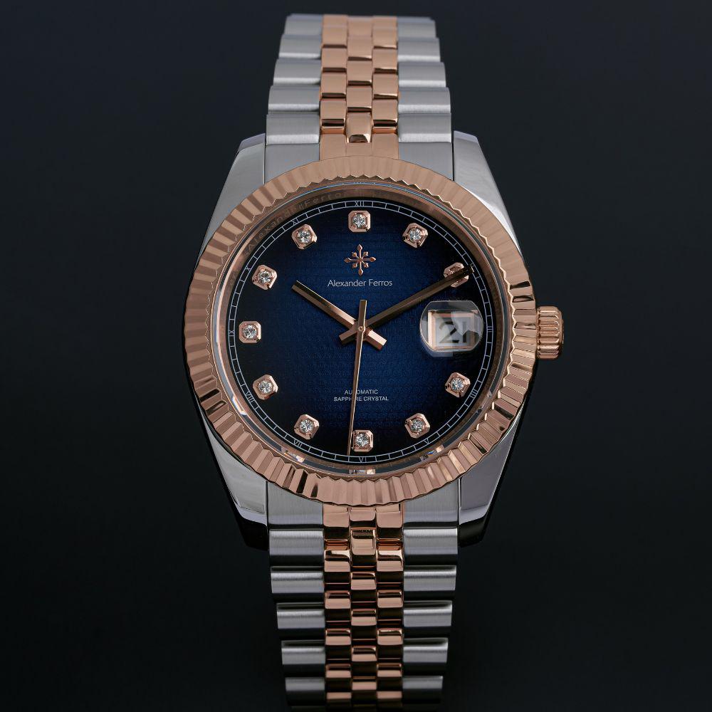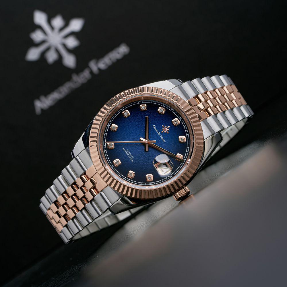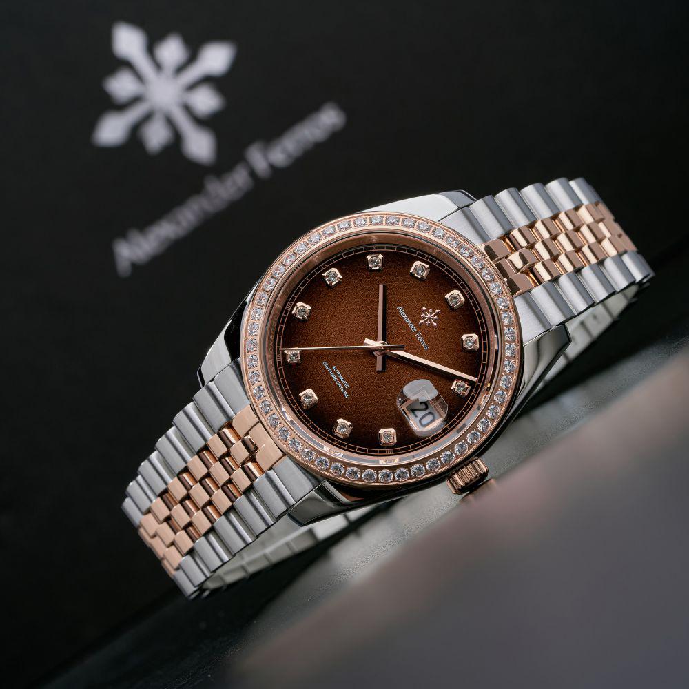 Đồng Hồ Alexander Ferros Bát Mã Đồ Mạ Vàng Hồng Cọc Kim