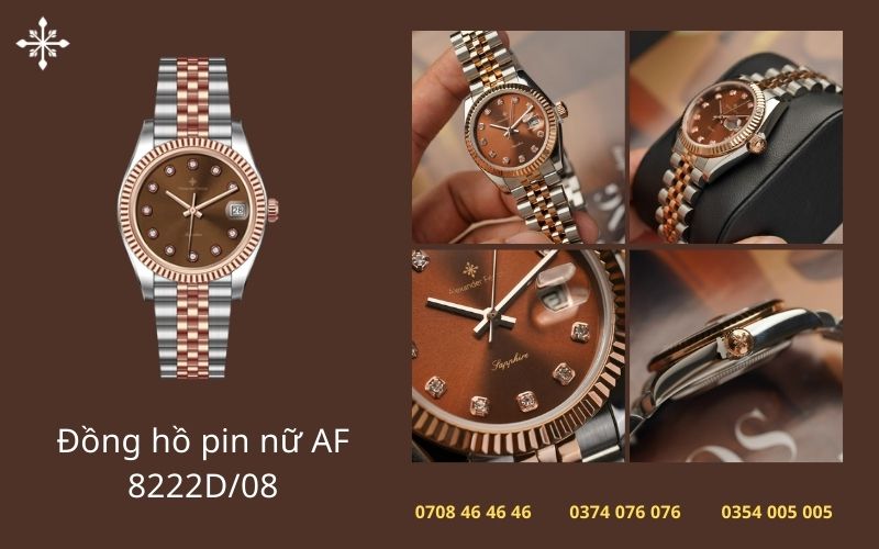- Đồng hồ AF pin nữ: sử dụng bộ máy quartz Nhật Bản chính xác, dễ sử dụng, phù hợp với những người ưu tiên sự tiện lợi và gọn nhẹ.