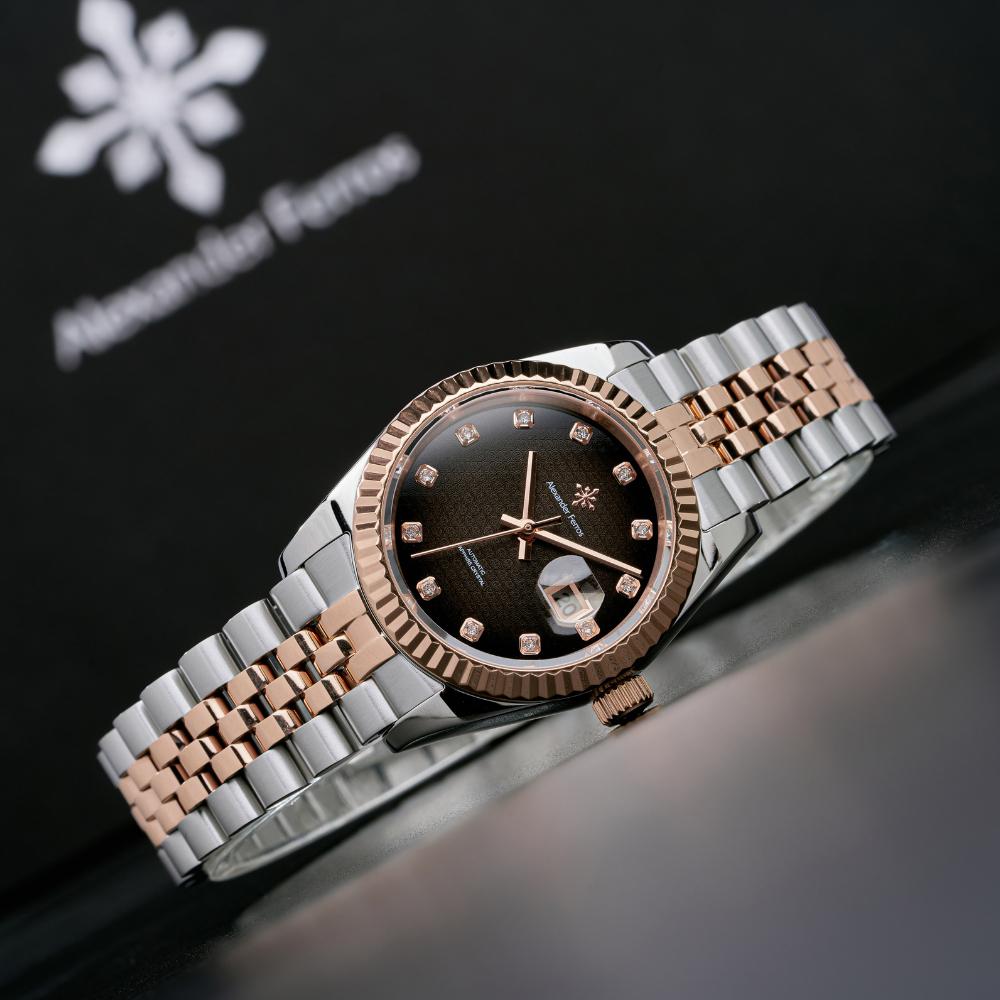 Đồng hồ nữ Alexander Ferros là lựa chọn lý tưởng cho phái đẹp yêu thích sự sang trọng, tinh tế. Bộ sưu tập AF dành cho nữ được thiết kế đa dạng từ đồng hồ quartz đến đồng hồ automatic, đạt tiêu chuẩn chất lượng quốc tế, phù hợp sử dụng hằng ngày lẫn những dịp quan trọng.
