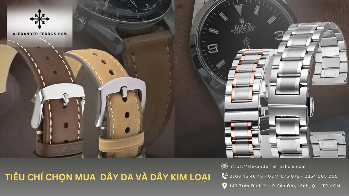 Trong bài viết này, Alexander Ferros HCM sẽ giúp bạn so sánh ưu điểm từng loại dây và hướng dẫn cách chọn đồng hồ phù hợp nhất.