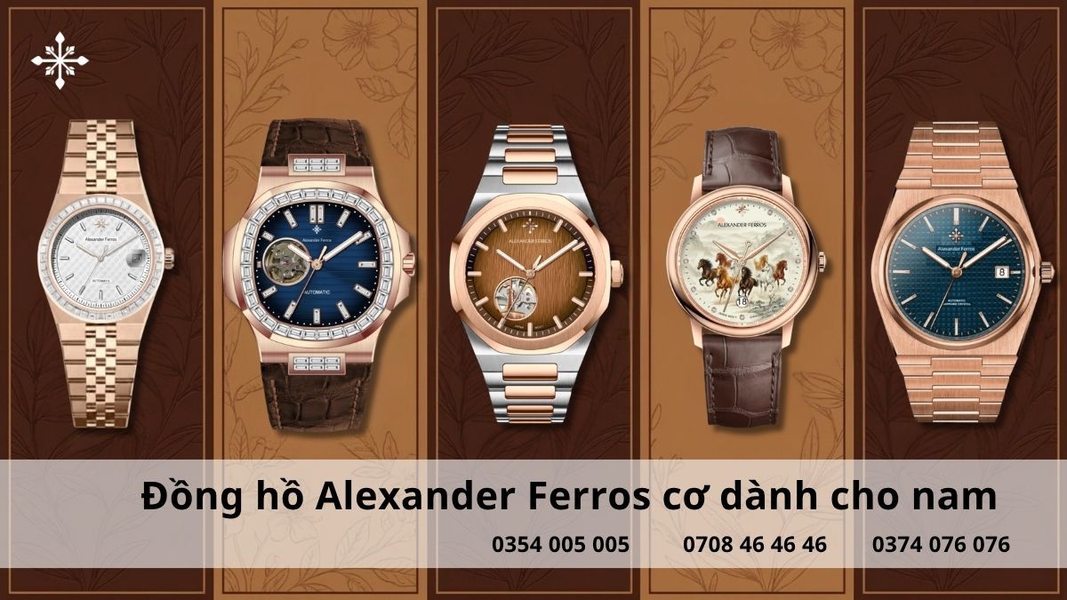 Nếu bạn đang cân nhắc nên mua đồng hồ máy cơ hay pin, các mẫu đồng hồ Alexander Ferros là gợi ý đáng tham khảo với thiết kế tinh tế và bộ máy ổn định.