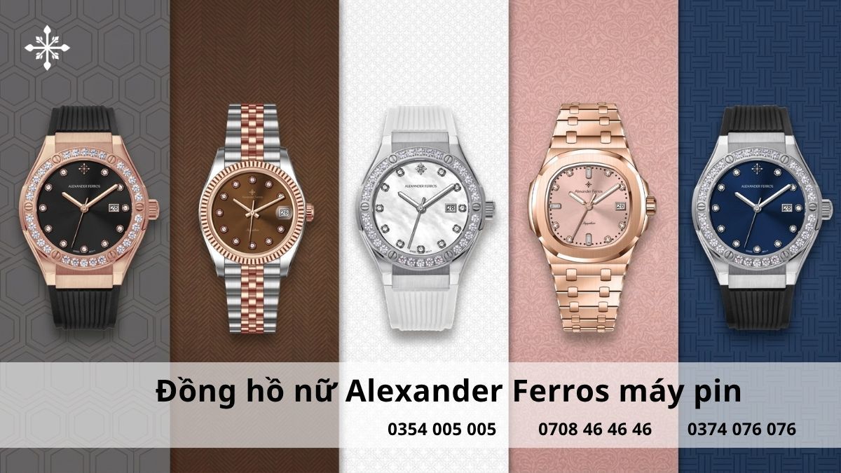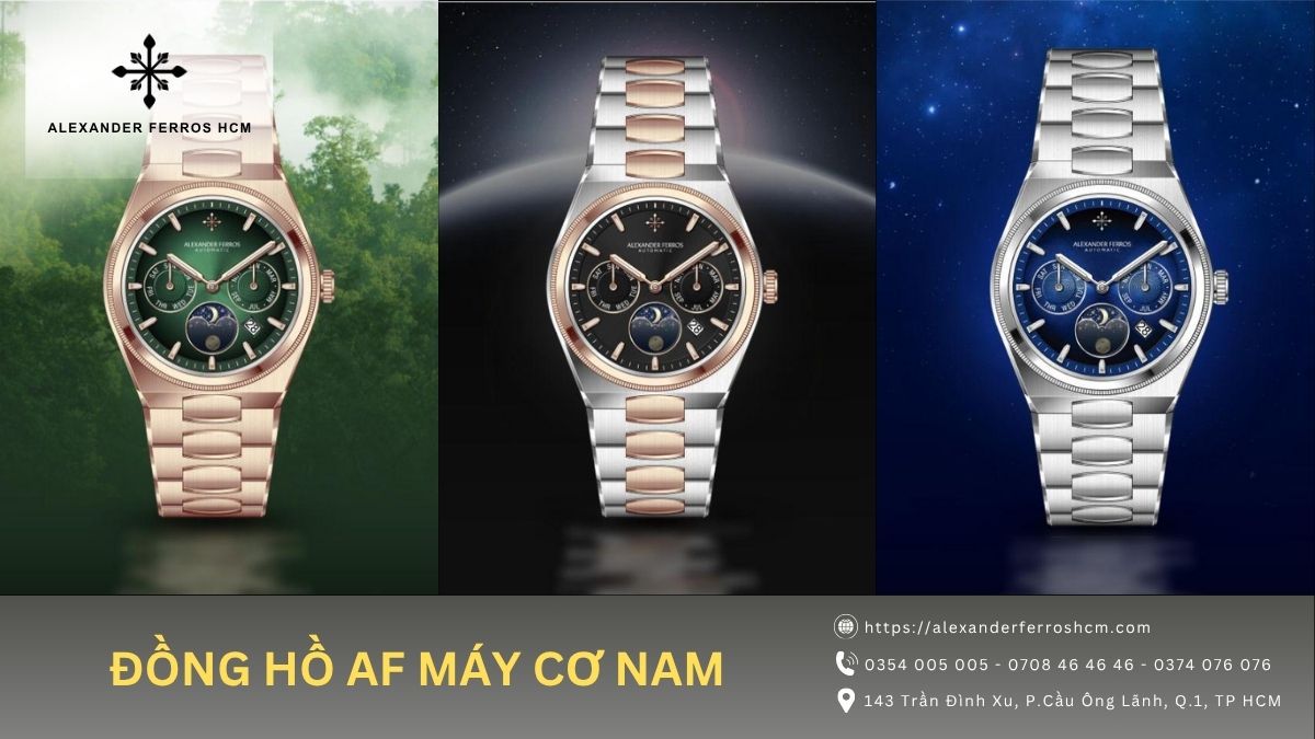 Nếu bạn đang tìm nơi mua đồng hồ chính hãng, Alexander Ferros HCM là địa chỉ đáng tin cậy với nhiều mẫu đồng hồ máy pin và máy cơ. Liên hệ để được tư vấn và chọn mẫu phù hợp.