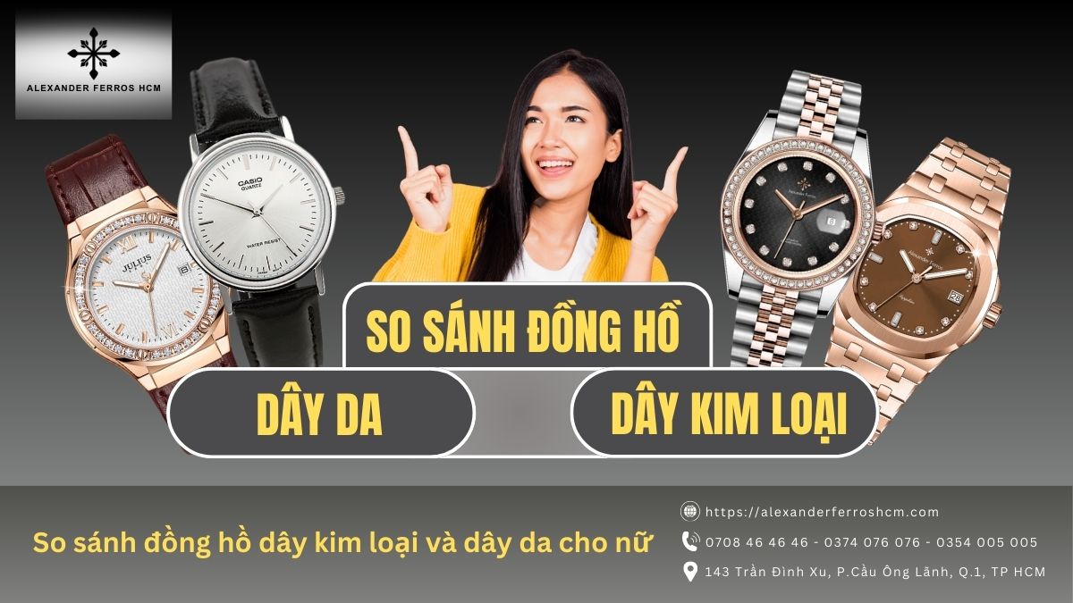 Trong phần này, Alexander Ferros HCM sẽ so sánh ưu và nhược điểm của đồng hồ nữ dây da và dây kim loại để giúp bạn lựa chọn phù hợp hơn.